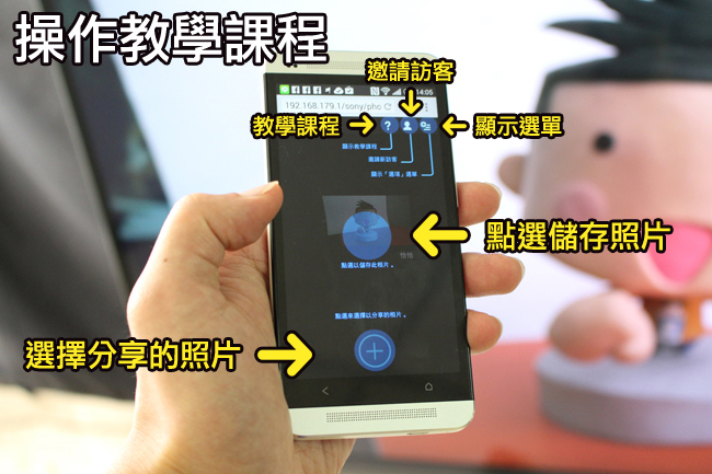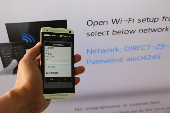 透過 Wi-Fi Direct 的方式來串連,所以各種平台的手機或行動裝置,都可以直接無線分享照片到電視來看,選擇相片分享(Photo Share)功能,找到連結熱點,將密碼輸入進去就可以囉!