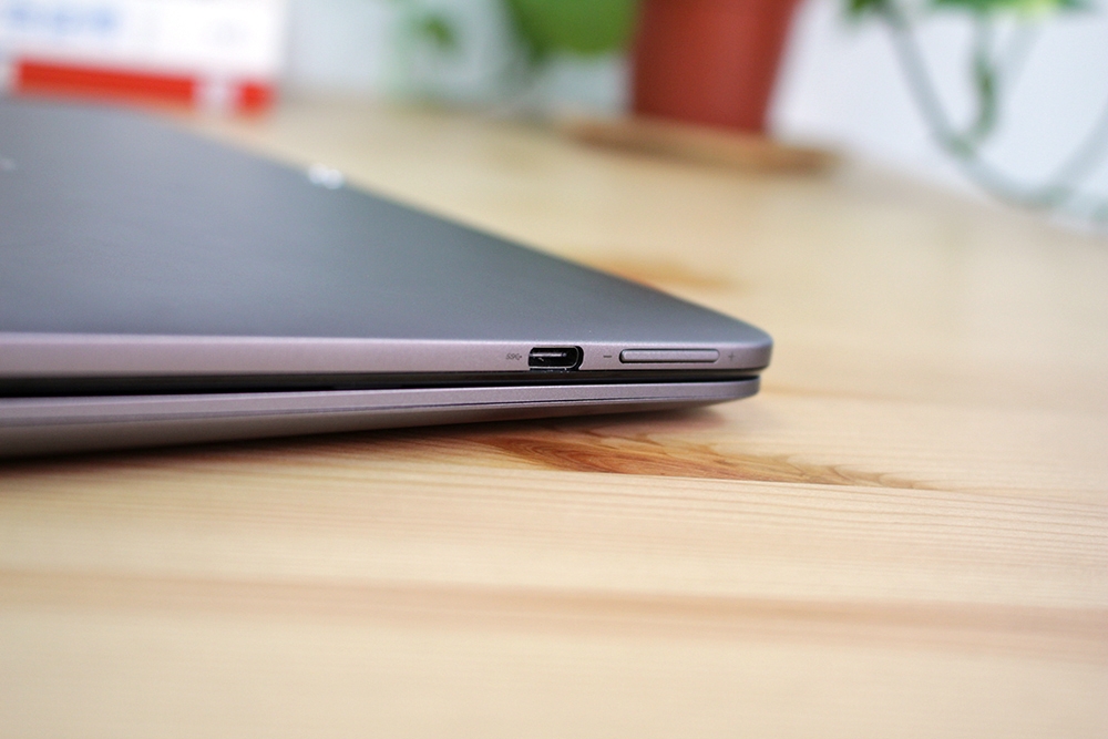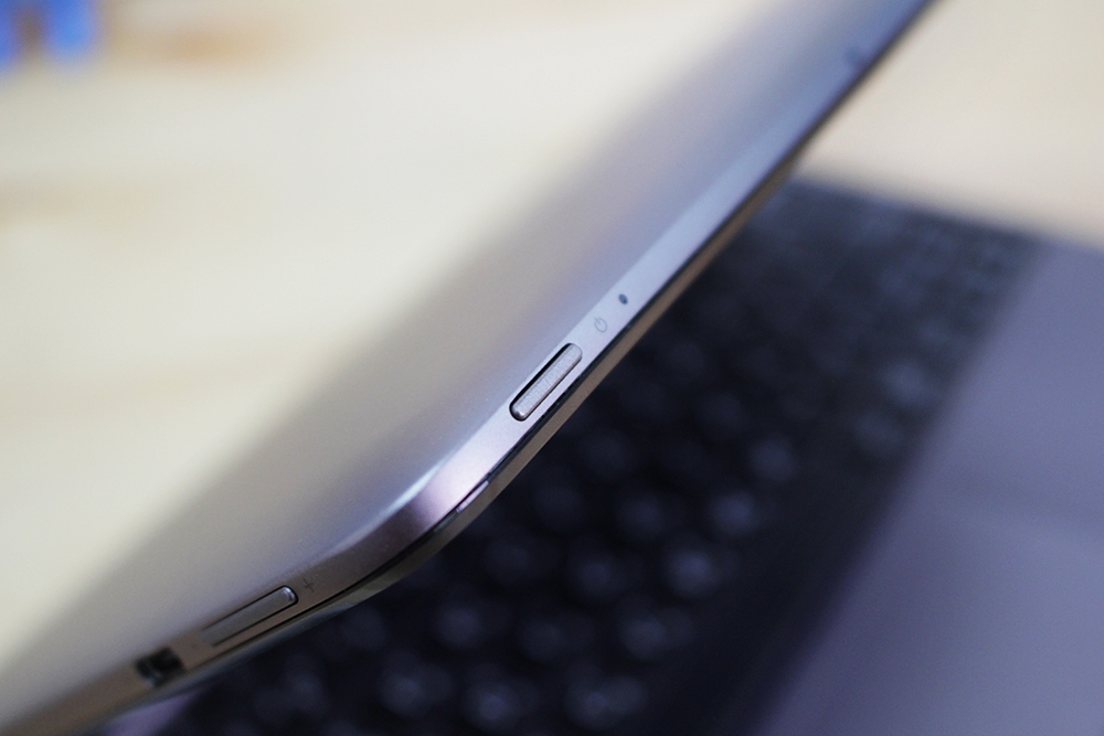 電源鍵則是設計在左上角,電源鍵旁為燈號提示。無論是平板還是小筆電模式都能輕鬆的按壓電源鍵,很難想像筆電還可以用行動電源來充電吧!