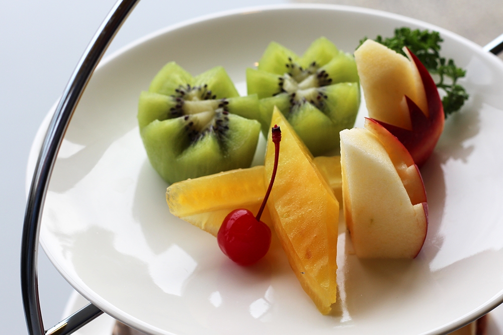 這裡簡單一層層介紹一下,最上面是新鮮的水果,奇異果不錯吃兒!