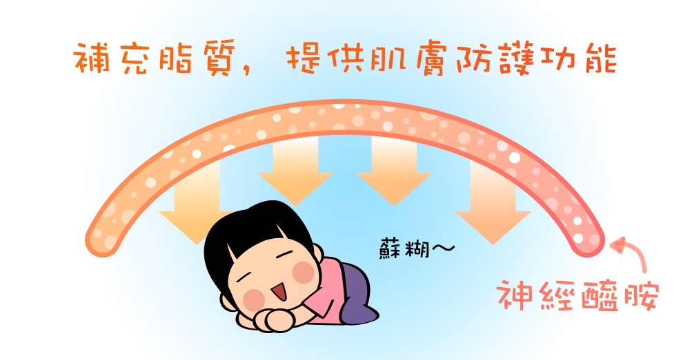 同樣有滋養的作用,在臉上形成保溼防護膜,像鼻子嘴唇附近容易乾燥脫屑,都可以這樣好好保養唷!