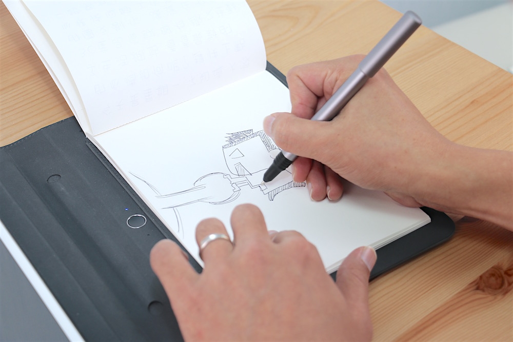 運作原理還滿特別的,你沒想到電磁感應和墨水可以這樣應用,傳統墨水筆搭配 Wacom 的輸入技術,讓我們能在大約 A5 的紙張上書寫,EMR(電磁感應)筆記板和 Bamboo Spark 的筆串聯,完成超漂亮的數位筆跡輸入。