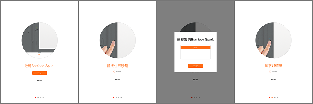首先先將 Bamboo Spark 和 iPad 搭上線,主要透過藍牙配對,只要照著 App 說的去「下一步、下一步」做就 OK 囉!