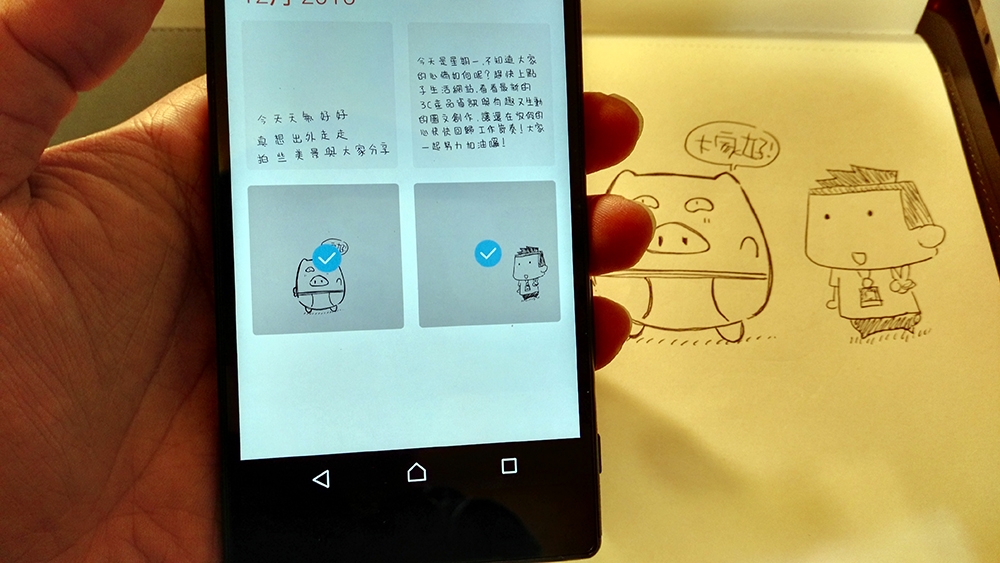 好啦!不要亂畫了,其實平常 Bamboo Spark 真的是我們的好幫手,最主要就是可以把平常手寫的筆記完完整整地傳到行動裝置,光這一點就可以鼓鼓掌啦!而且我帶著去開會也很輕鬆,反正開會也是會帶個筆記本的。