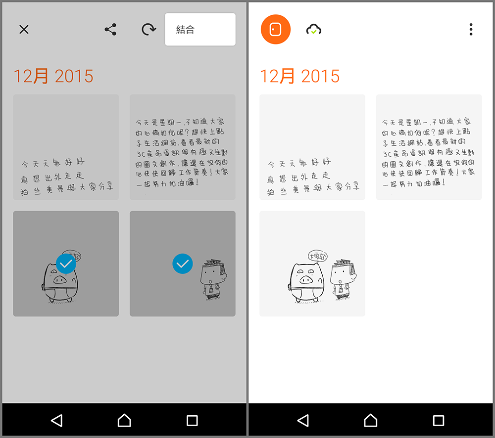 另外像我不同時間點畫了兩張圖,還可以做合併的動作唷!