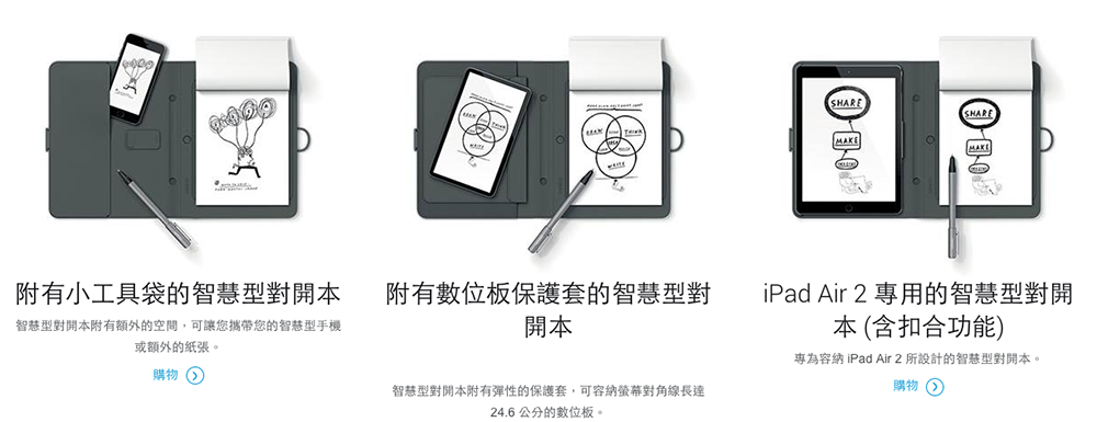 目前型號 Bamboo Spark 有三種型號,主要是對開本的保護套設計差異,小恰的是中間這款的,可以照你的需求來選擇囉!