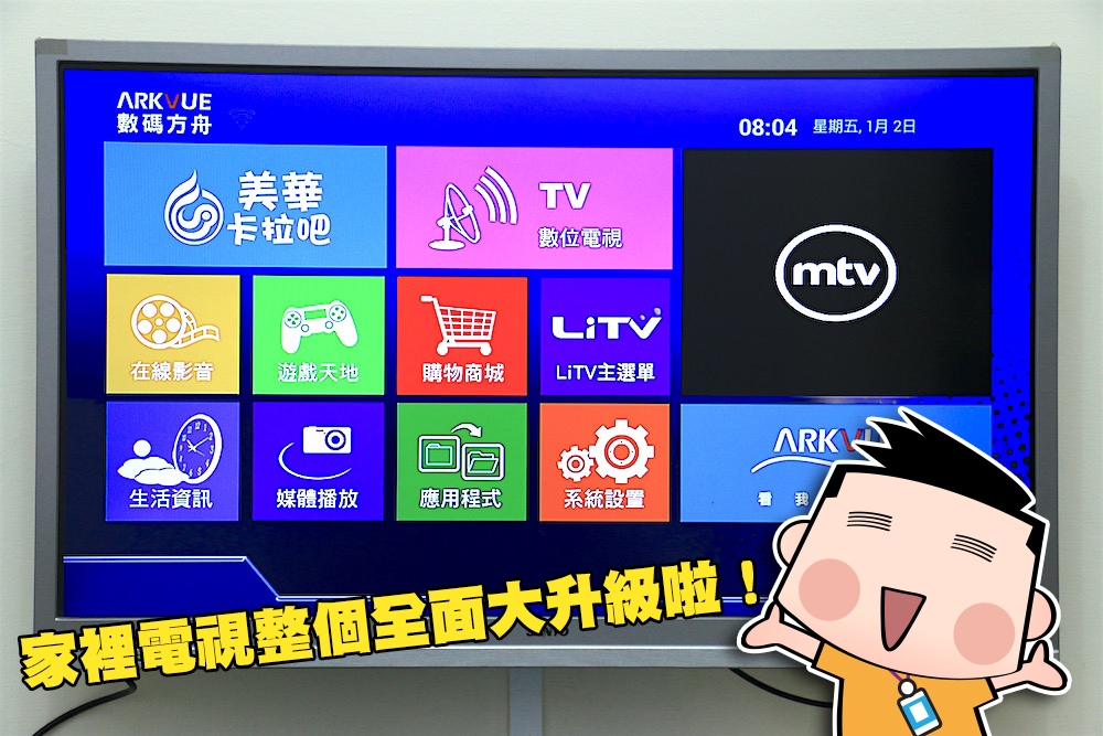 另外是數位電視的部份,除了可以利用美華卡拉吧來唱歌之外,數碼方舟雲端多媒體播放機當然也可以觀看數位電視,透過 LiTV 提供的數位電視服務,就能輕鬆地欣賞 30 多個熱門頻道。