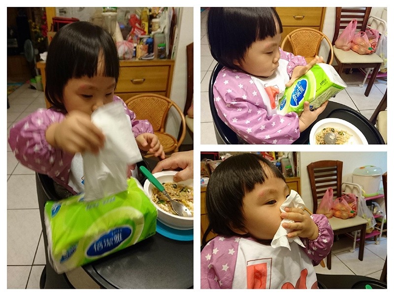 因為練習吃飯時真的需要很快的隨手抽一張,柔軟的紙質也不會傷害到小寶貝,不添加螢光劑,讓爸媽使用得更安心!