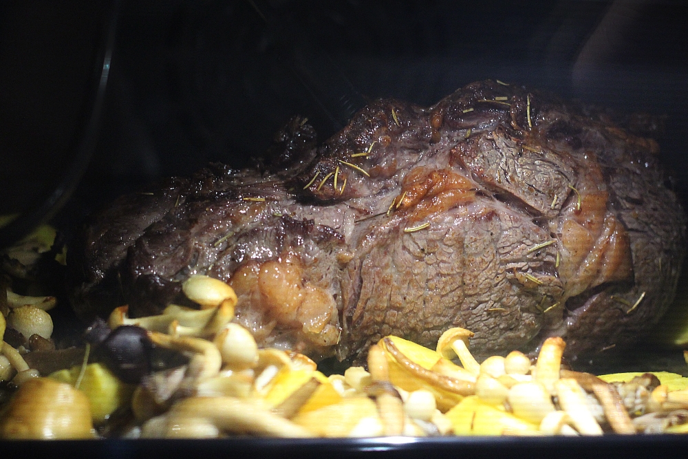 這樣最適合今天烤的肋眼牛排,因為裡面有脂肪、瘦肉和骨頭的話,這樣的感測可以抓得最準。另外 Bosch 8 系列烤箱的「4D熱風技術」,可以讓熱氣更均勻地分佈在烤箱的每一個地方,受熱可以更均勻,就算食物在不同層烘烤,也有很好的烘焙效果,不用特別去調整位置!以前在家裡在烤牛排,常常沒辦法這麼均勻耶!甚至有某些部位又太熟太硬了,最後犧牲了好多地方,不然都是留給爸爸吃,如今可以完美解決啦!