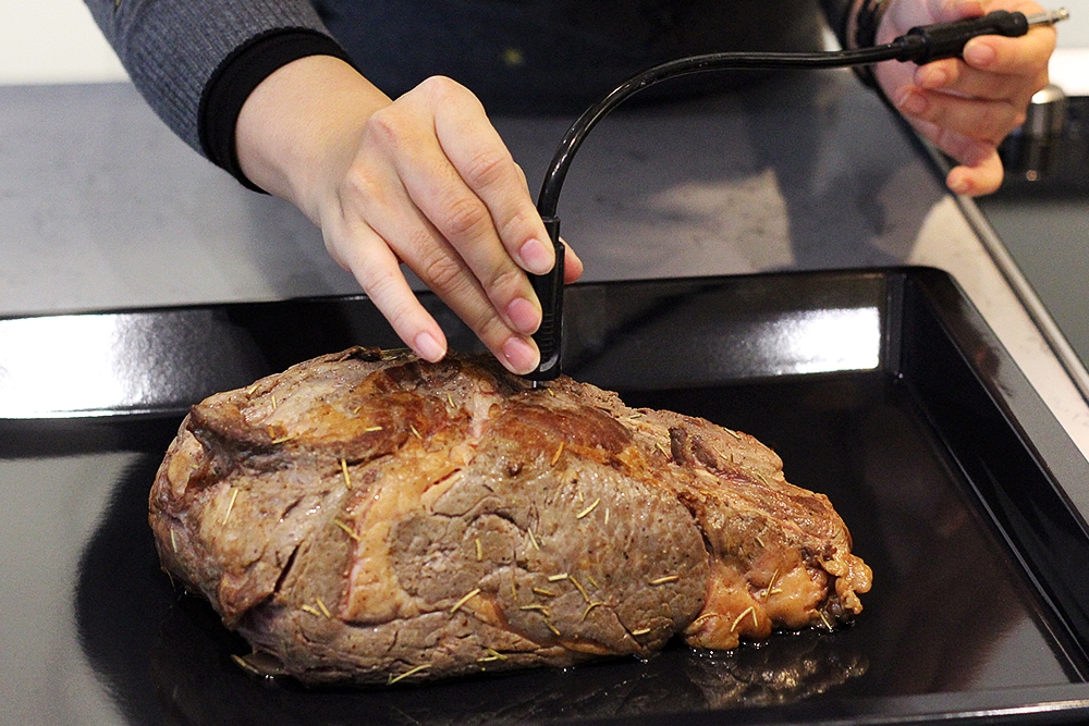 最讓我好奇的是 Bosch 8 系列烤箱的「3 點食物探針」的革新設計,這也是我第一次看到這樣的設計,安插上去並藉由 3 個位置的感應器,可以更精準掌握食物的實際溫度,從核心到表面的熟度都可以符合期待,在烘烤上會更得心應手唷!(我覺得我有點開始流口水了…)