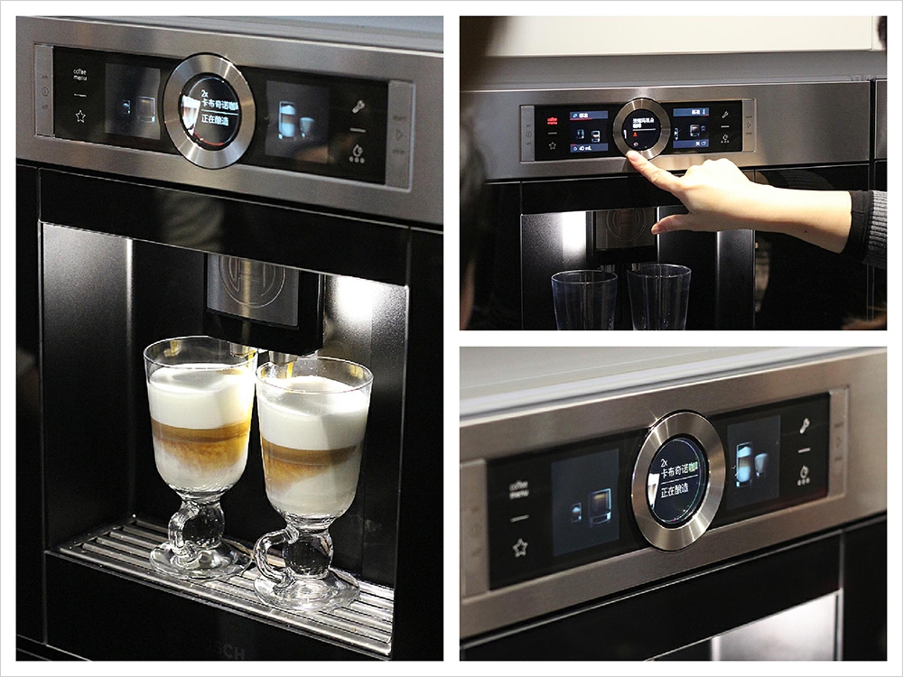 趁這個空檔來喝杯咖啡吧!現場也可以看到 Bosch 的嵌入式咖啡機,個人真的很愛這種經典不鏽鋼色的設計,實際沖泡卡布奇諾的感覺真的超妙的,看到不斷冒出的蒸汽和熱牛奶,和最後呈現出來的卡布奇諾,總有種自以為咖啡職人的衝動,想要多幫大家沖幾杯咖啡,哈哈!