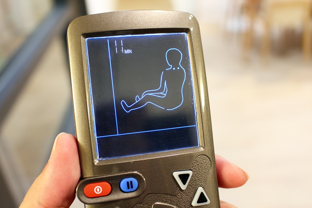 上方的螢幕會顯示目前按摩的位置與狀態,你也會知道目前這個程序運作到哪裡了、還有幾分鐘結束。