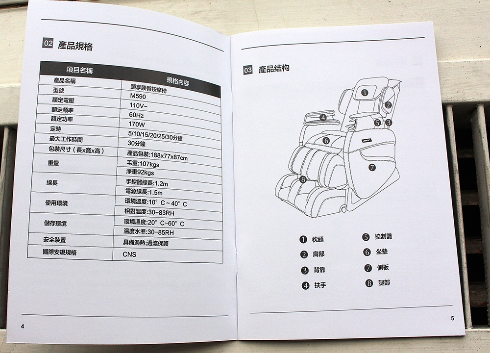 翻開手控器的蓋子,還有各類人性化的按摩選項,其中速度、強度和力度都有 5 段調節,寬度也有 3 段調節,提供了身體各部位的按摩設定,我拿給岳父、岳母使用時,清楚的標示和大字,讓他們也用得很上手。